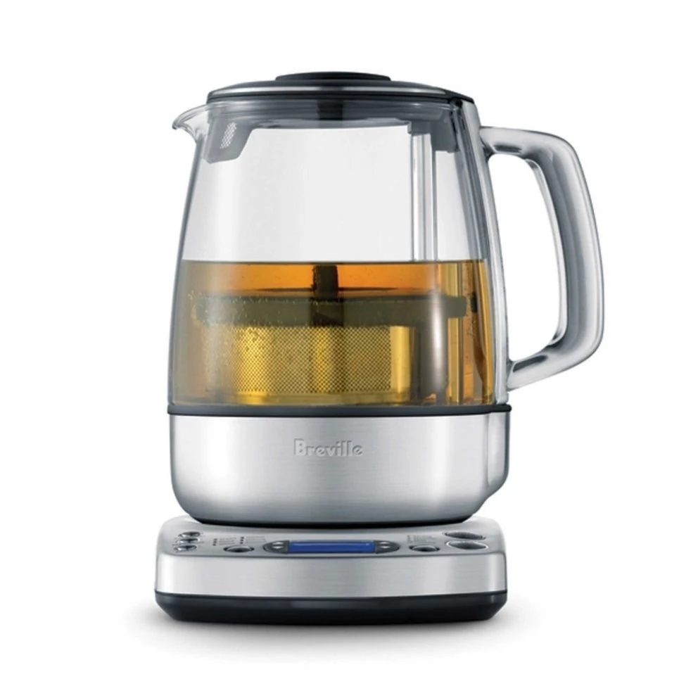 Nothing makes tea easier to brew than the One-Touch Tea Machine from Breville. This kettle features an automated brewing basket that slowly rises and sinks into the water to agitate leaves and ensure you get the fullest flavor. With a German-made carafe and stainless steel base, this tea maker is built to last for years and includes a 1-year warranty for added confidence. Customize your tea with ease using the adjustable temperature settings and steeping timer and work your day around your cups of tea with ease using the programmable feature to set tea up to start up at a specific time. Brew your next cup of tea with ease using the Breville Tea Makerâ„¢, get yours today!